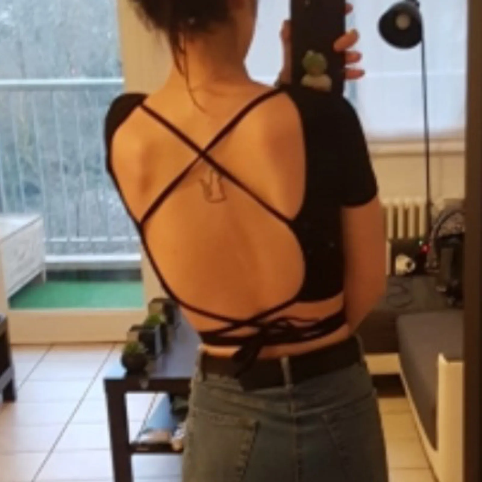 Женская футболка с открытой спиной и коротким рукавом, в стиле Харадзюку