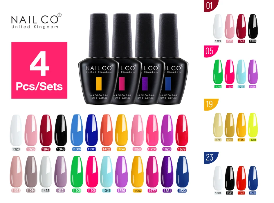 NAILCO 4psc Набор цветных полуперманентных ногтей отмачиваемый Гель-лак аксессуары для ногтей все для маникюра гель для наращивания сверху8,3 долларов США/Шт/Лот 4