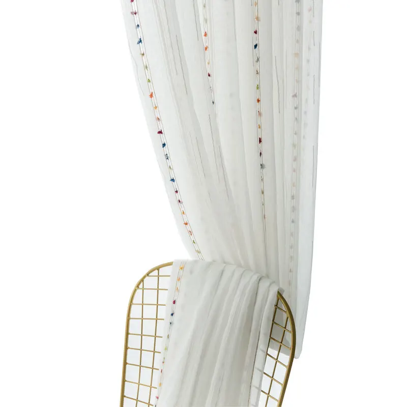 Жаккардовая занавеска с белыми вертикальными полосками, занавеска с радужным дождем для гостиной, столовой, спальни, 2022