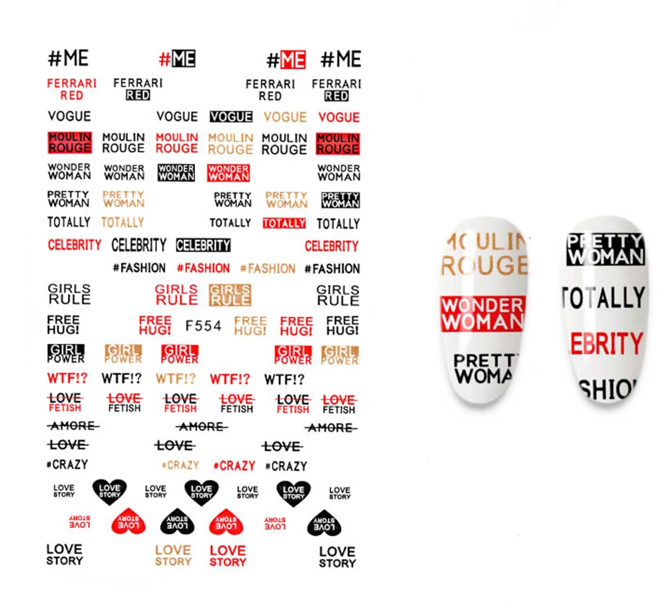 3D наклейки для ногтей крутые английские буквы наклейки для ногтей Фольга любовь сердце дизайн аксессуары для ногтей стикер для маникюра