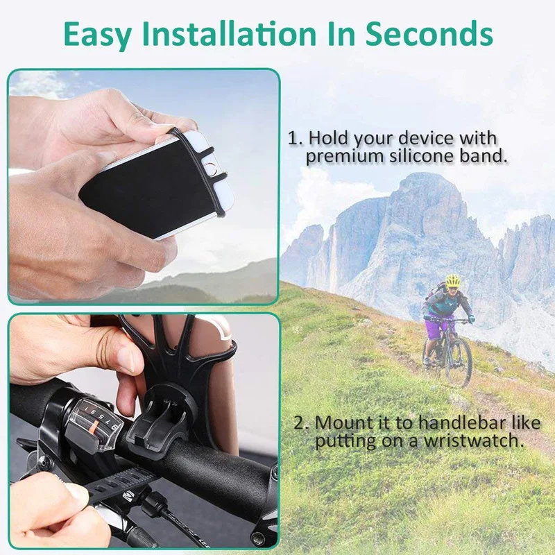 【 Вращение на 360 градусов 】 свободно устанавливайте свой телефон под любым углом, соответствующим вашим предпочтениям, обеспечивая вам максимальную гибкость при просмотре телефона и отслеживании пробега, времени или карт во время езды. 【Установка в секунду 】 ремень из инновационного силикона позволяет легко прикрепить или открепить его с руля любого размера. Установите его так же, как наручные часы.