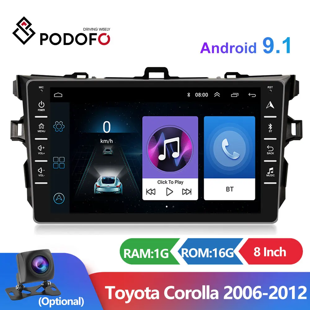 Podofo 8 дюймов 2Din android 9,0 автомобильное радио воспроизводительный мультимедийный плеер для Toyota Corolla 2006 -2012 2 din GPS WIFI без DVD Авторадио