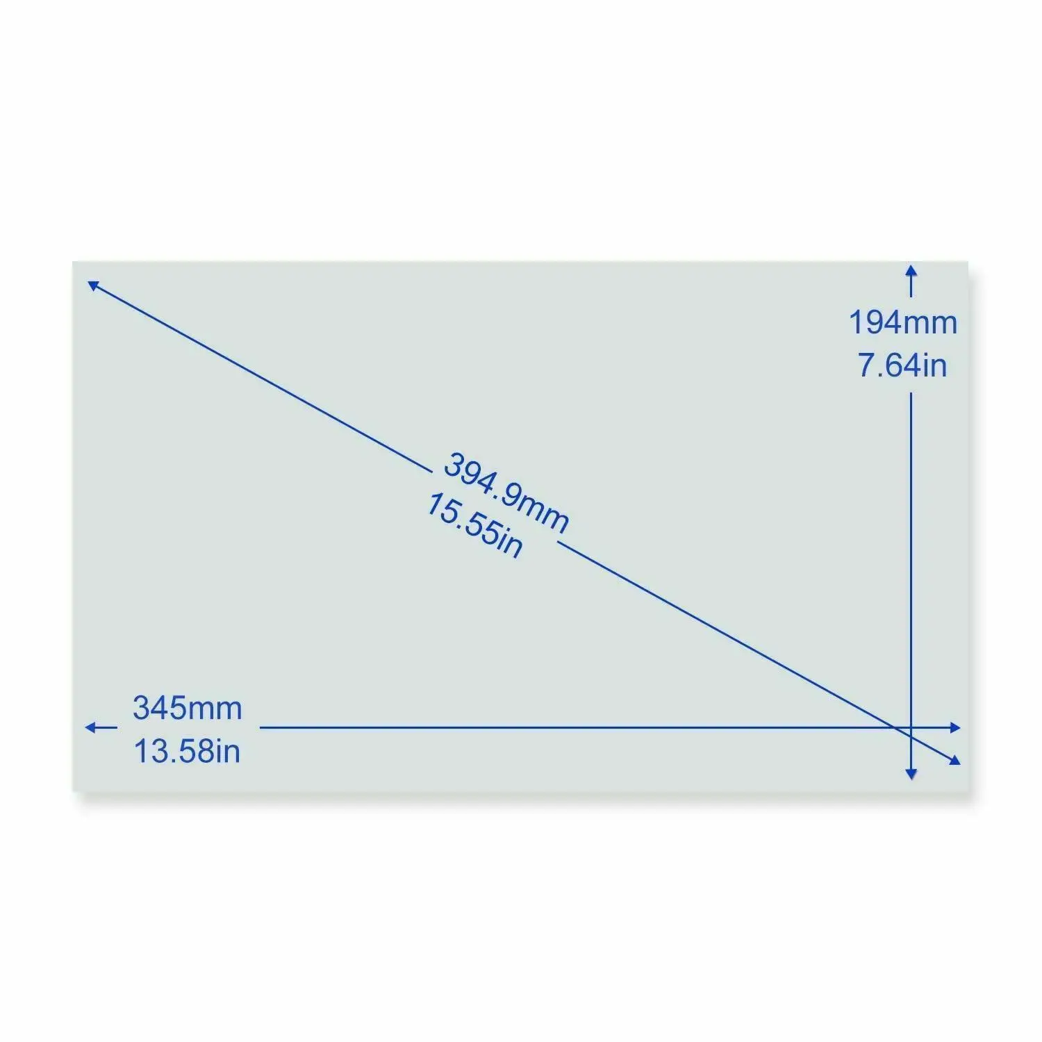 На защита экрана Размер 15,6 "(16:9) 345 мм * 194 мм, он покрывает только видимая часть экрана.