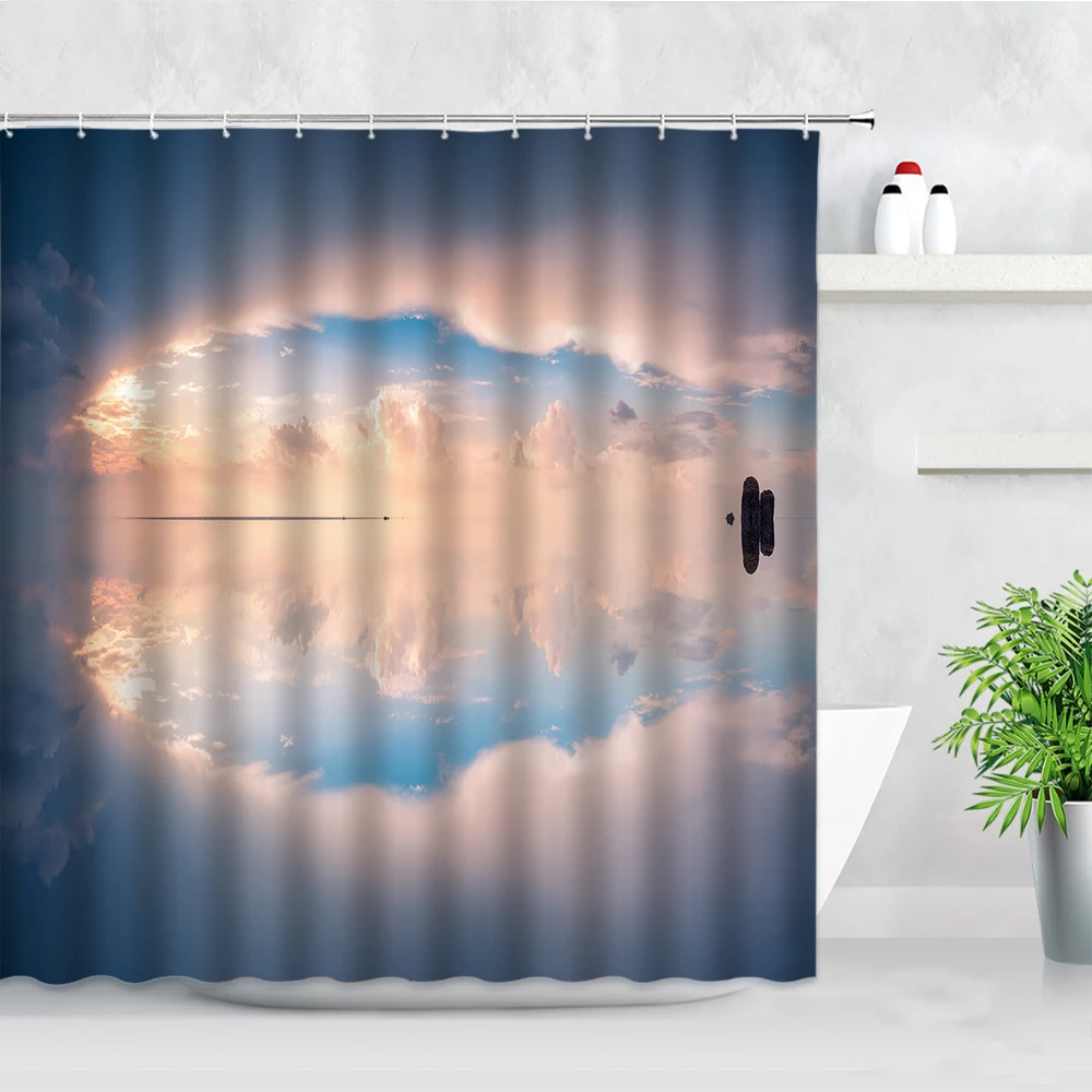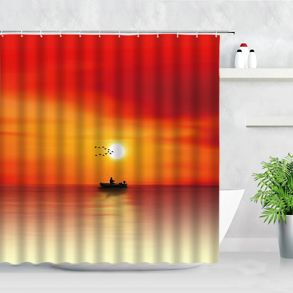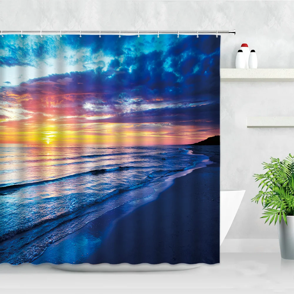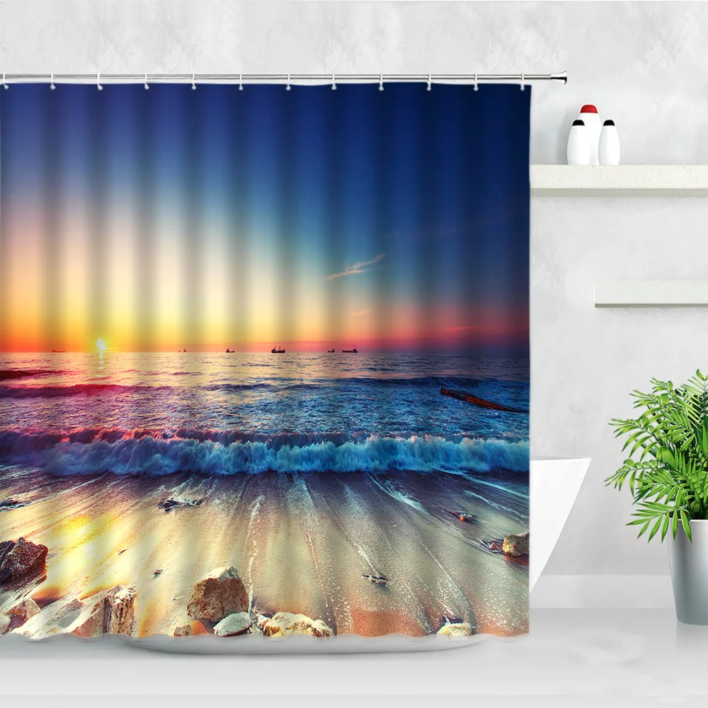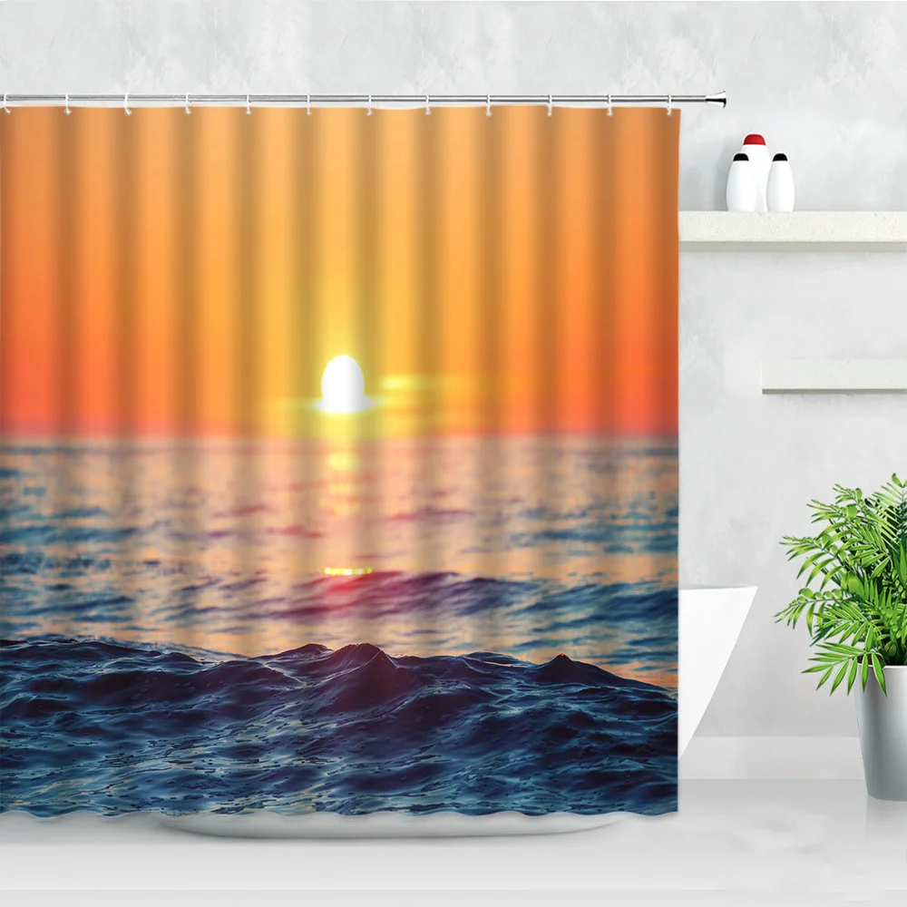 Занавеска для душа с морским пейзажем, водонепроницаемый тканевый ш...