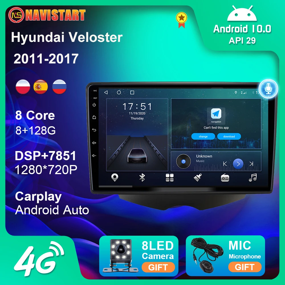 Автомобильный мультимедийный DVD-плеер, проигрыватель на Android 10, с GPS, Wi-Fi, 4G, 128G, для Hyundai Veloster 2011-2017, типоразмер 2 Din