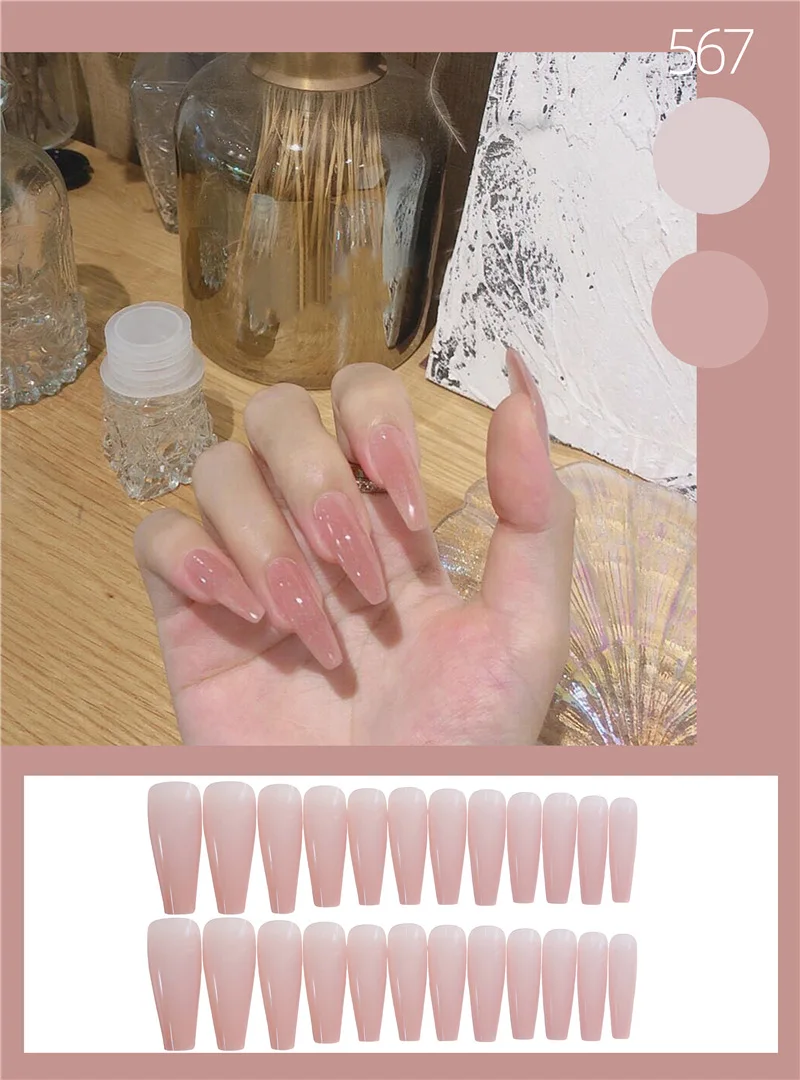 Ультратонкие накладные ногти, 24 шт.компл., прозрачные, розовые, многоразовые, с клеем