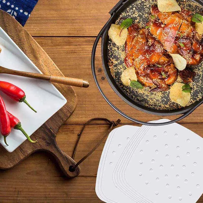 100 шт.упак. аэрофритюрница для приготовления блюд без Премиум перфорированной Pad пергаментная бумага квадратной формы с антипригарным покрытием паром корзина ковер для выпечки растительное масло бумага