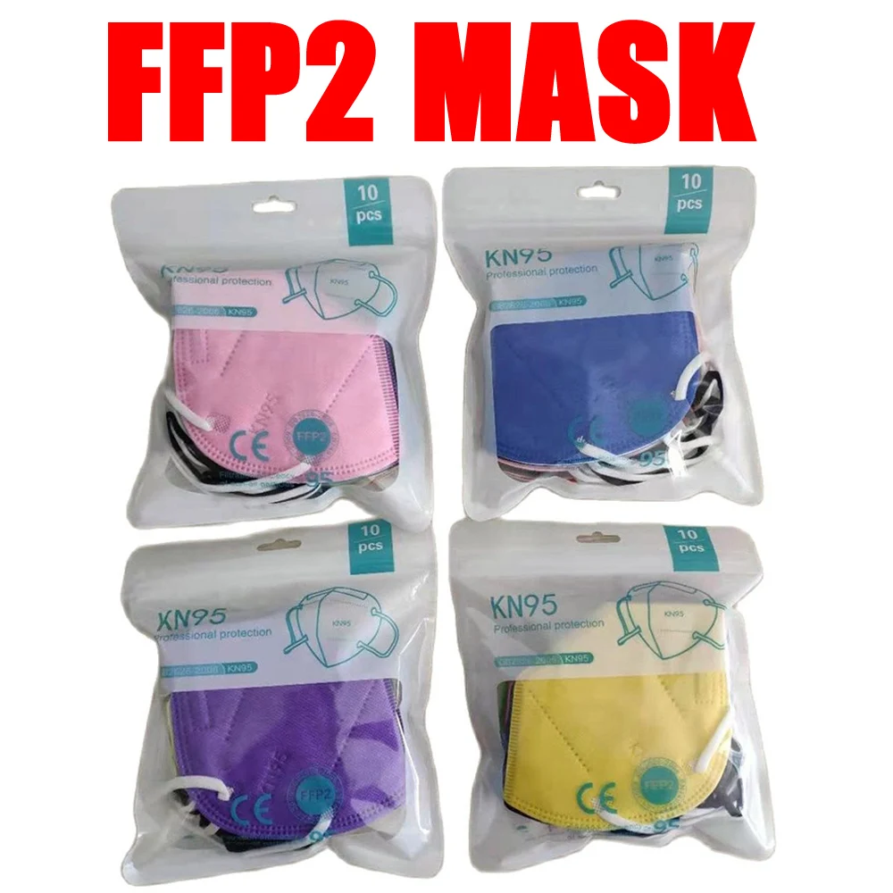 10 шт., одобренные 14 цветов FFP2 маски для лица CE KN95, маски для лица fpp2, респиратор, защитные маски, 5-слойные маски для защиты от пыли