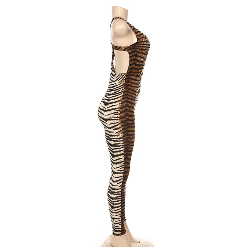 Комбинезон женский для фитнеса, с вырезами на спине, Осень-зима, комбинезоны с леопардовым принтом