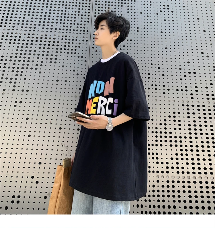 Футболка LAPPSTER мужская с буквенным принтом, модная рубашка в стиле Харадзюку, Свободная блуза в Корейском стиле, черный цвет, лето 2022