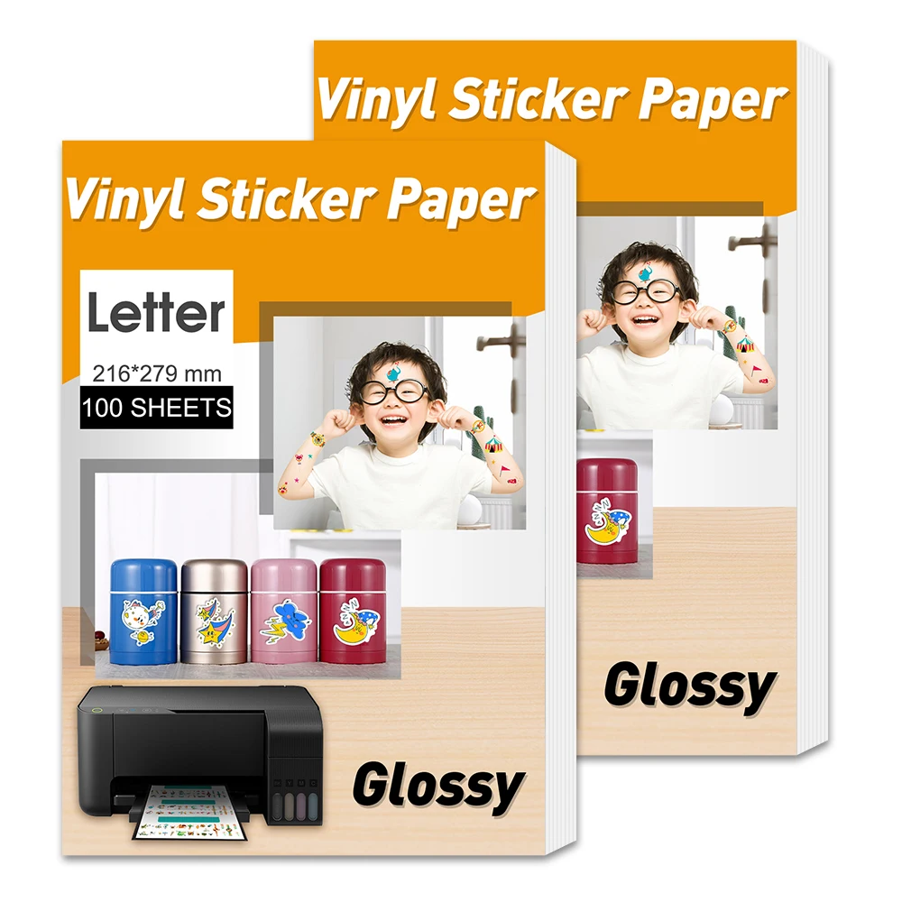 UniPlus 100 листов Стикеры из глянцевой бумаги винил для печати листы ПВХ белого цвета для Canon струйного принтера HP Стандартный письмо Размеры "сделай сам"