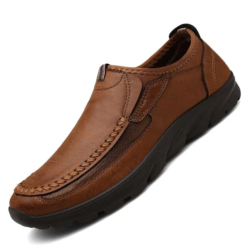 Мужские кожаные кроссовки, коричневые Лоферы без шнуровки, Нескольз...