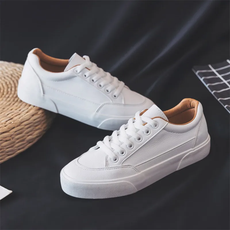 Женские кожаные кроссовки, Повседневные Удобные белые туфли на плат...