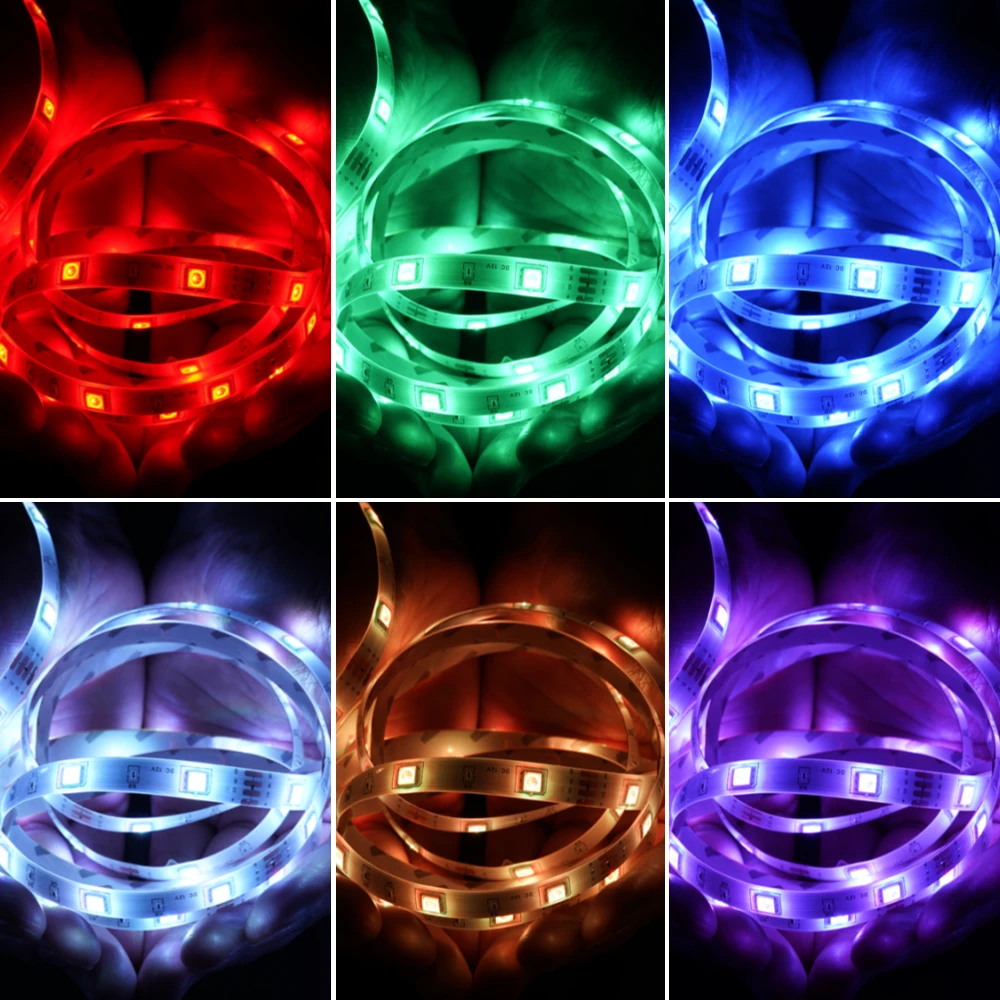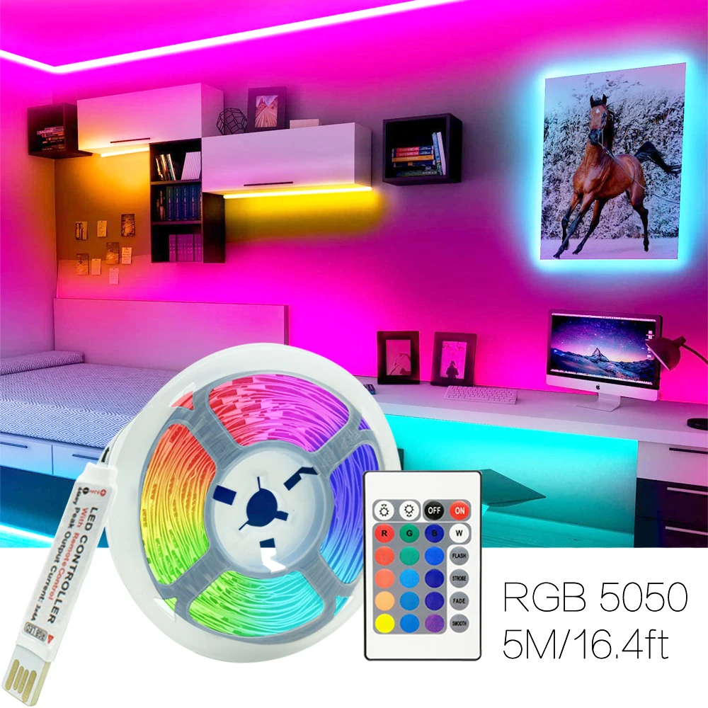 Гибкая светодиодная лента 16,4 футов (5 м) для настольного компьютера, телевизора, приборной панели, с инфракрасным управлением, RGB 5050, 5 В, для спальни Вечерние