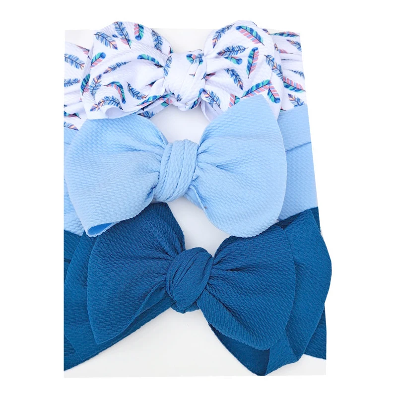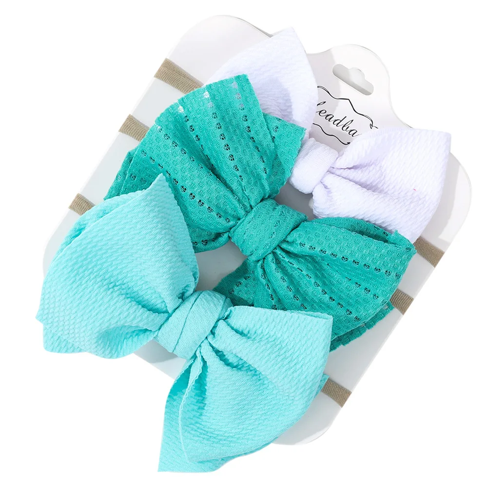Повязка для волос однотонная с узлом для девочек, милые летние эластичные регулируемые головные повязки с цветочным бантом, 3 шт.компл.