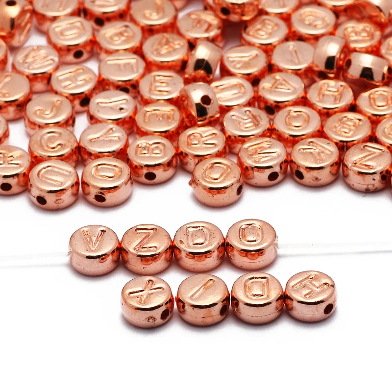 Смесь из розового золота с буквами акриловые бусины 4x7 мм круглые Алфавит Spacer Бусины для изготовления ювелирных изделий Diy ожерелья, браслеты, аксессуары