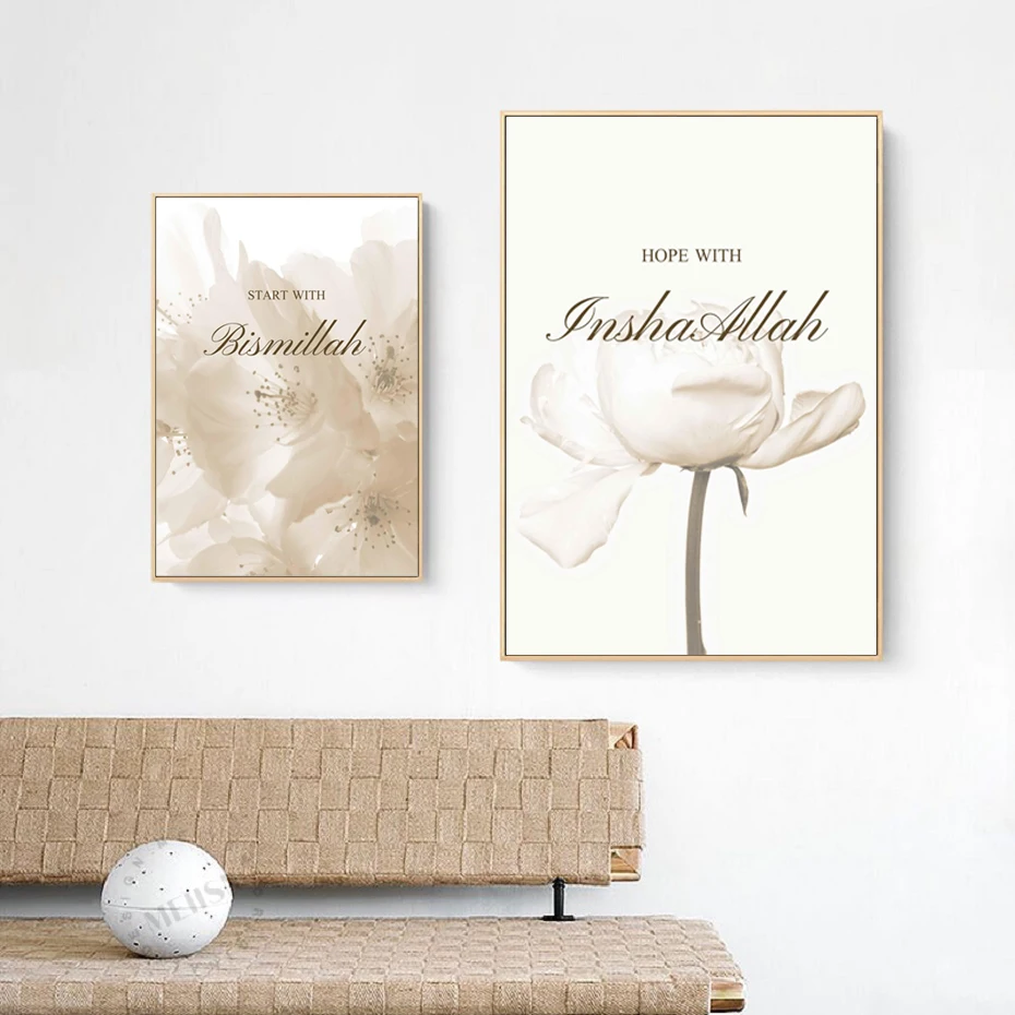 Цветочная мусульманская настенная Фреска Bismillah, Картина на холс...