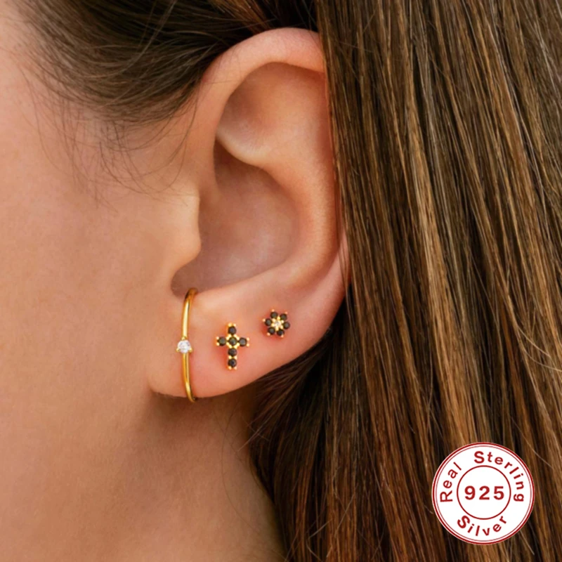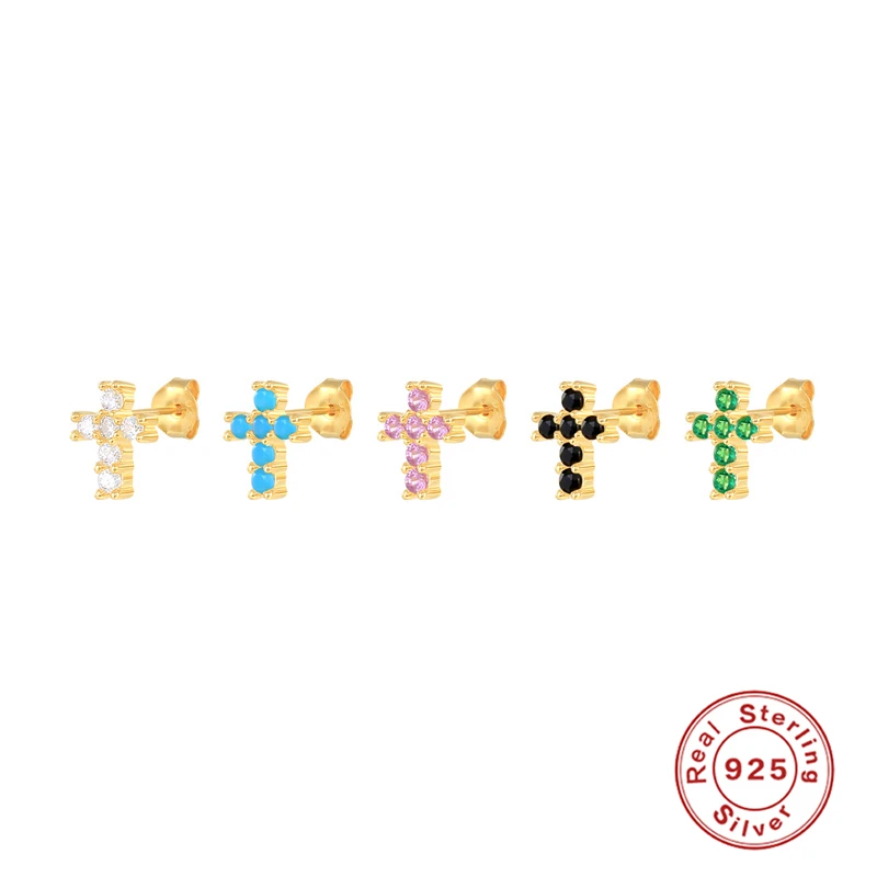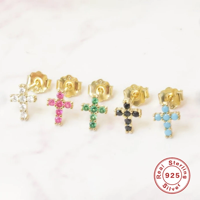 Автоклав 925 пробы серебряный крест серьги-гвоздики в виде детской одежды в цветах радуги CZ из мозаичного стекла Модный Циркон пирсинг Kolczyki; Искусственная кожа; Прямая продажа (дропшиппинг); damskie 1 пара
