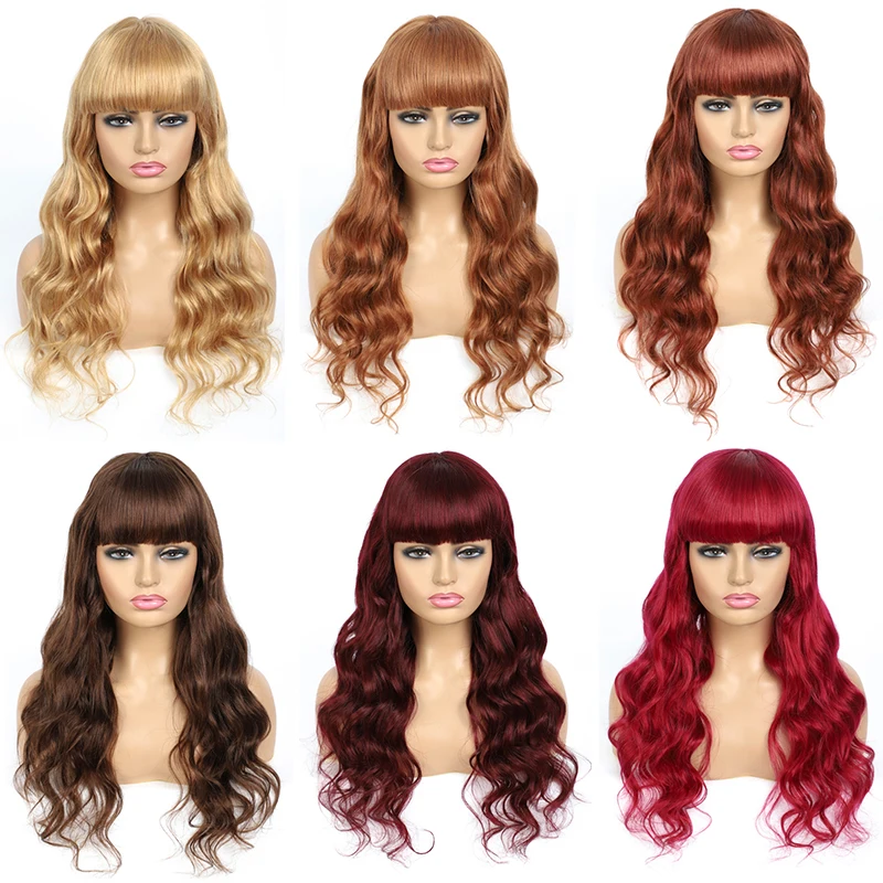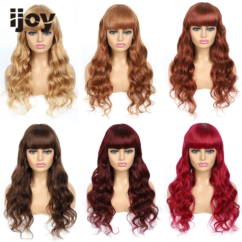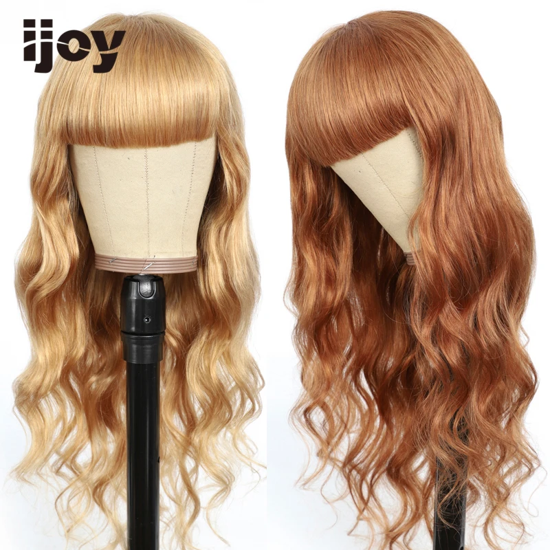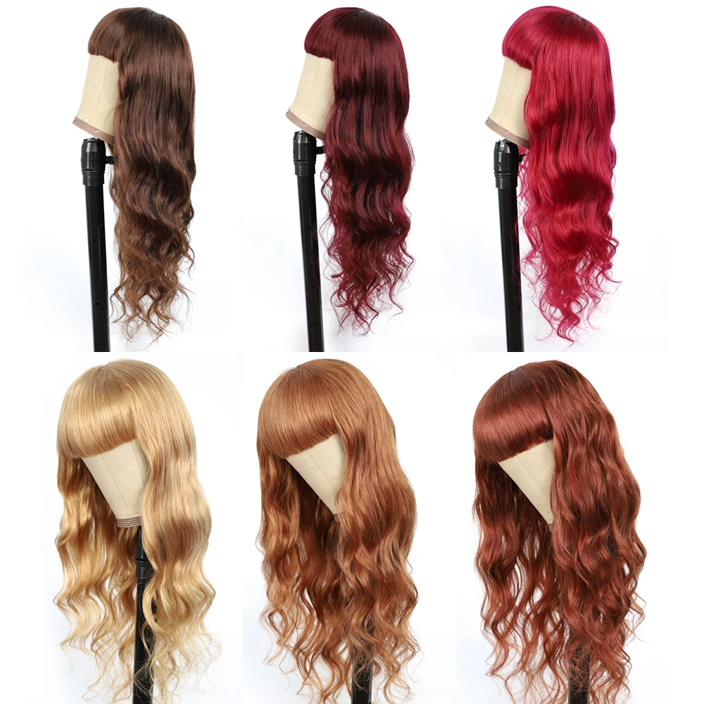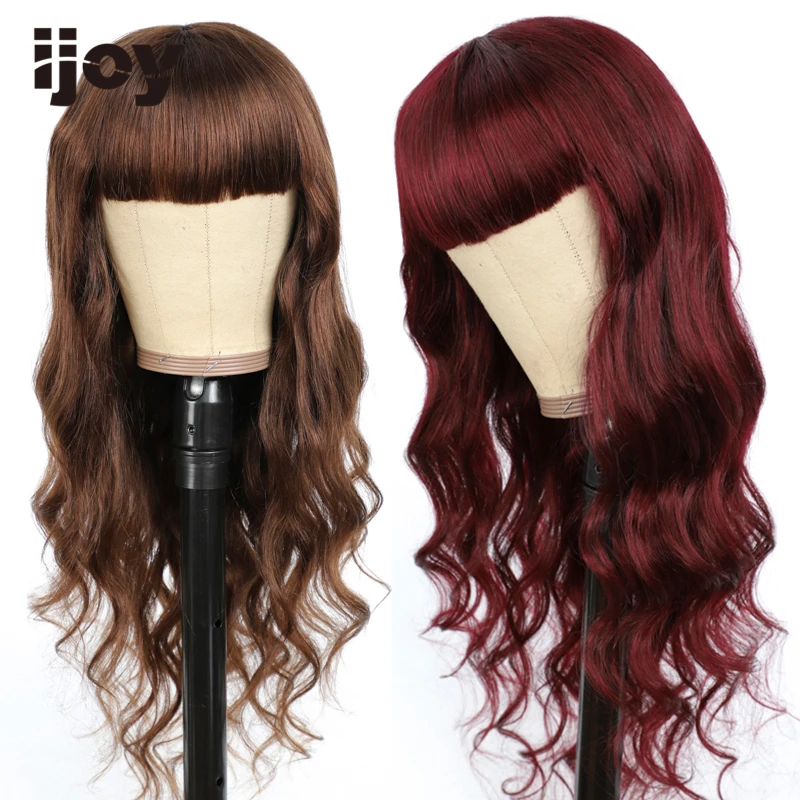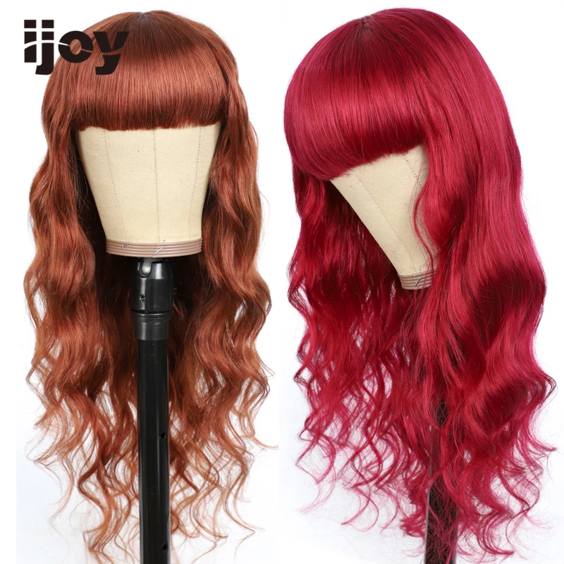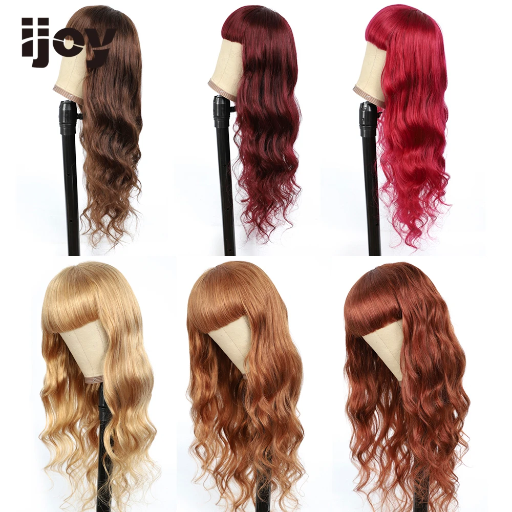 Парик из человеческих волос Full Machine с челкой, парик с волнистыми волосами тела, цветной парик из коричневых и красных бразильских волос для черных женщин, 150% не Реми, IJOY