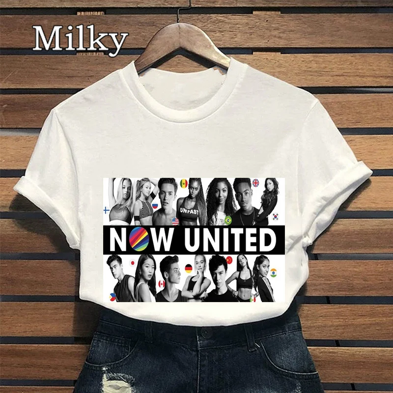 Женская футболка с принтом Now United Group, белая футболка с графи...