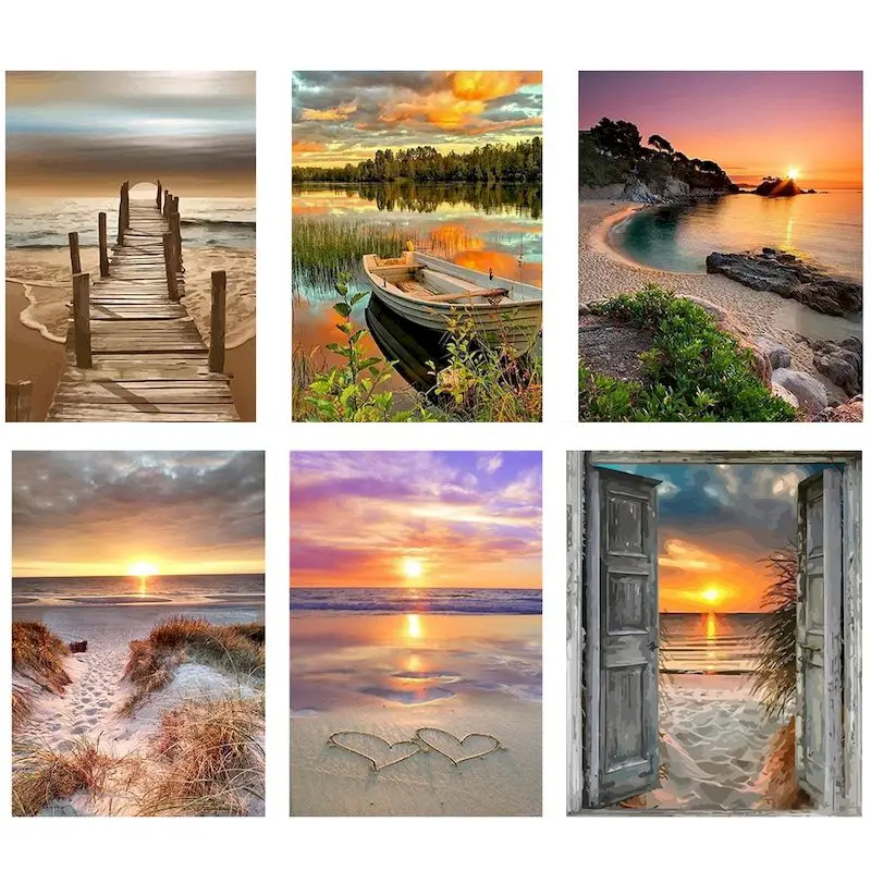 GATYZTORY рамка песчаный пляж краска по номерам для взрослых детей ручная краска пейзаж масляная краска рисование на холсте DIY подарок для дома Wal