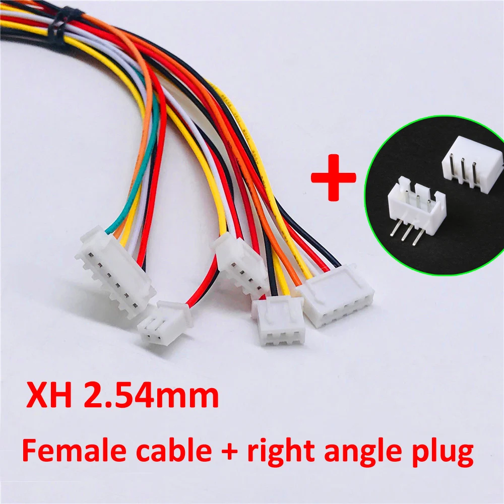 10 комплектов, разъем для кабеля JST XH 2,54 мм, 23456 Pin, штекер Мама, изогнутая игольчатая розетка, провод 26AWG