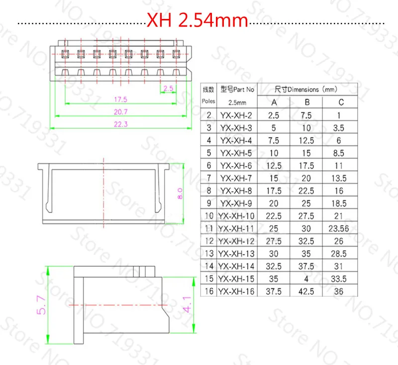 Переходник для кабеля JST XH2.54 XH 2,54 мм, шаг 23456 контактов, ш...