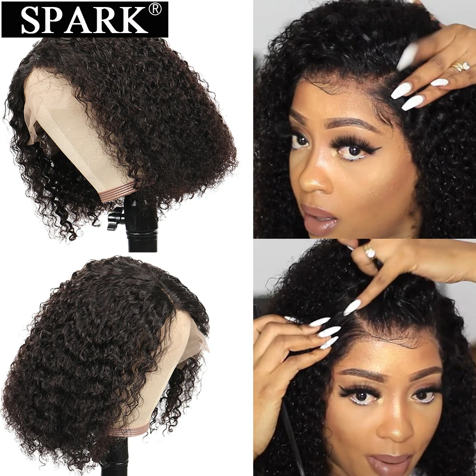SPARK 1B30 кудрявые человеческие волосы парик Боб кружева человеческие волосы парики короткий боб парик бразильские волосы Remy влажные и волнистые 4x4 кружева закрытие парик