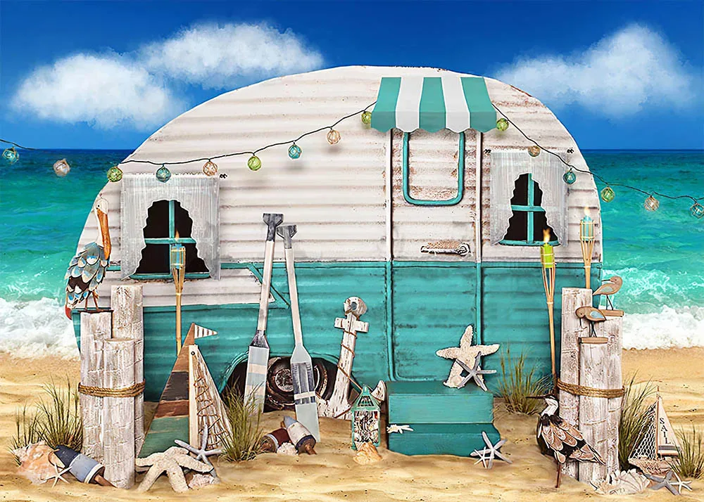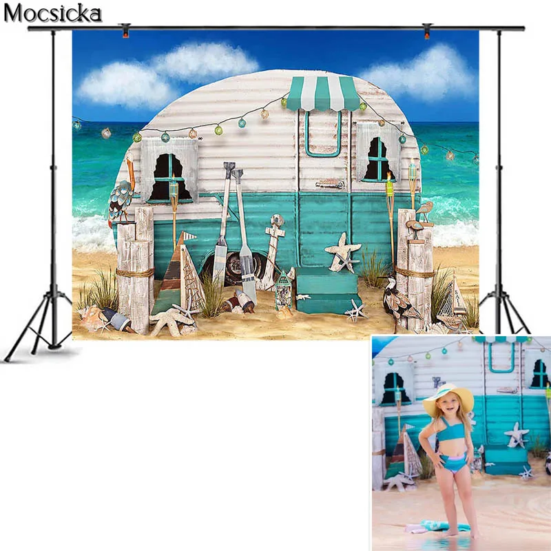 Фон для фотосъемки с изображением летнего песчаного пляжа морского синего неба деревянной двери реквизит для детского дня рождения праздника вечеринки фотостудии