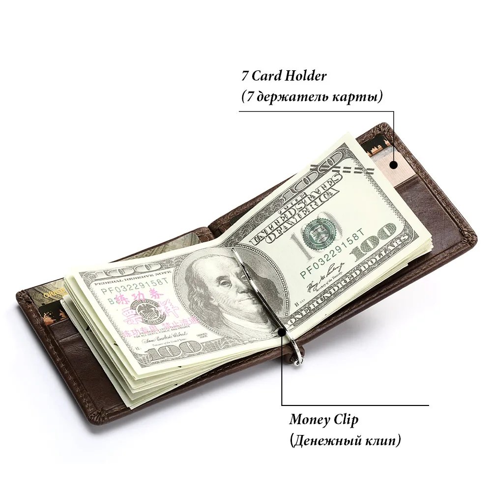 Кошелек мужской из натуральной кожи, тонкий зажим для денег, кредитница, дизайнерский мини-кошелек