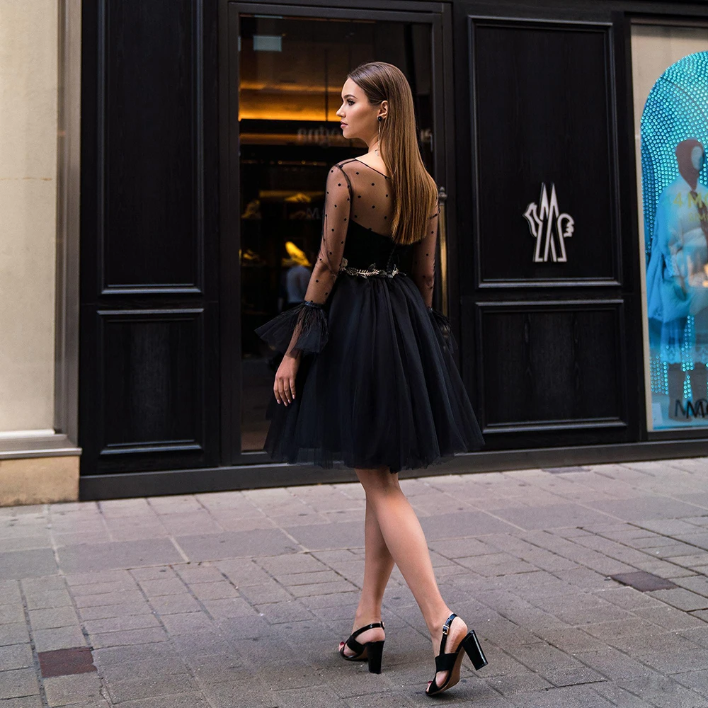 UZN элегантное короткое вечернее платье трапециевидной формы с глубоким декольте длинное вечернее платье с рукавами в горошек Сетчатое платье с цветочной аппликацией для выпускного вечера