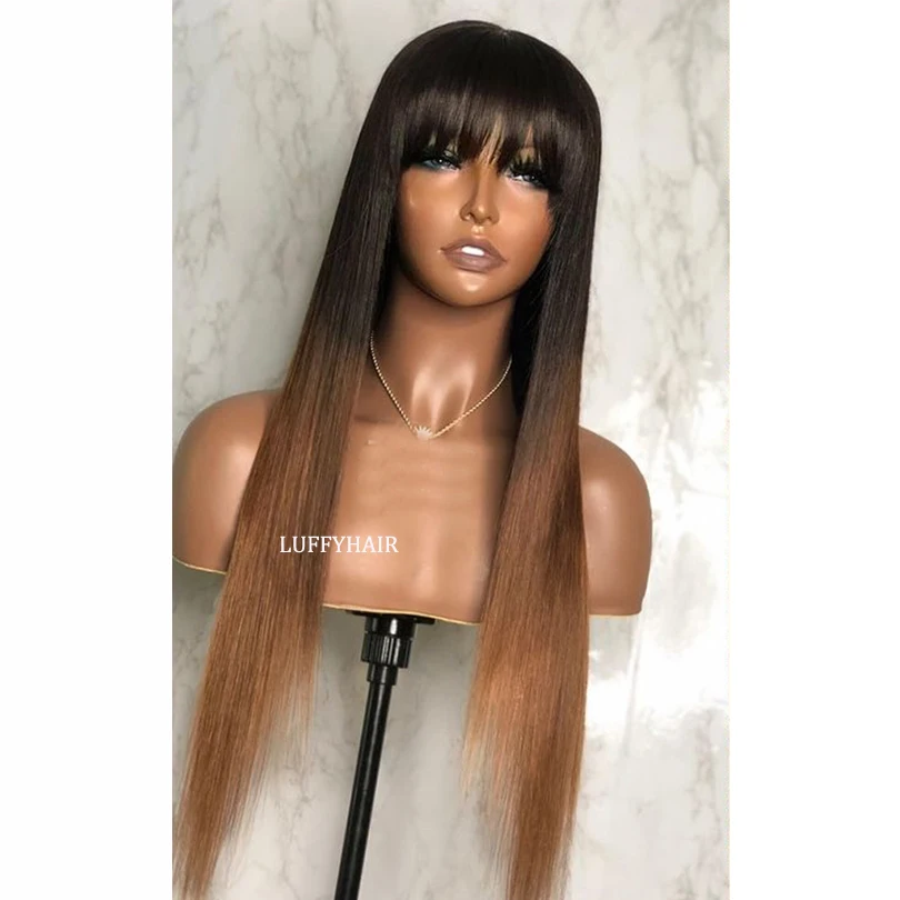1B/30 Омбре прямые челки человеческие волосы парики для женщин безклеевая кожа головы топ полный машина парики с челкой двухцветные