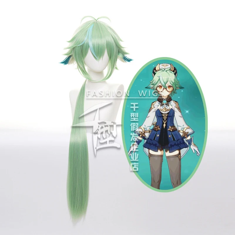Sucrose парик с ушами Косплей Костюм Жаростойкие синтетические волосы игра Genshin влияние женские зеленые длинные парики