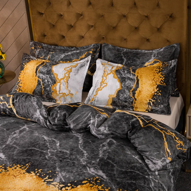 Комплект постельного белья с пододеяльником и наволочкой, с мраморным принтом