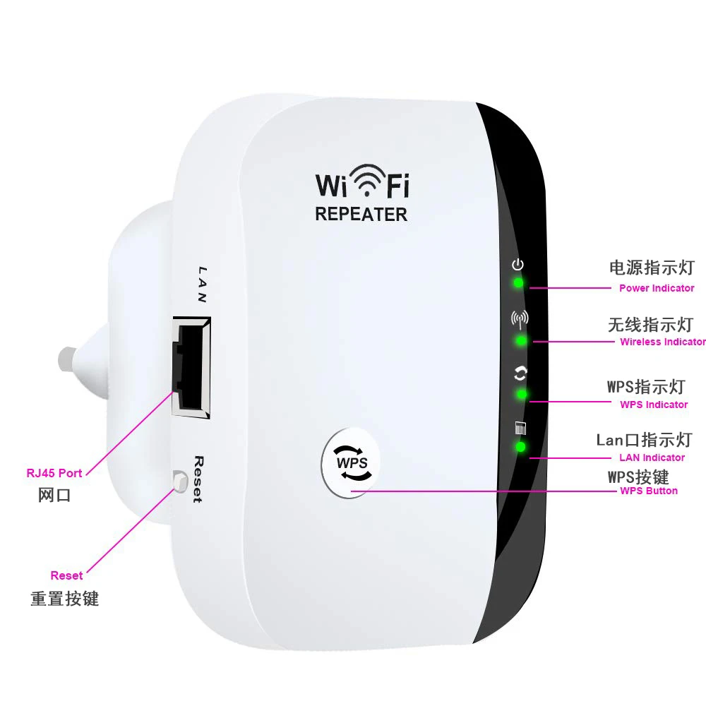 Порт Ethernet позволяет расширителю работать в качестве беспроводного адаптера для подключения проводных устройств, совместим с устройствами 802.11n/g/b, работает с любой беспроводной сетью, маршрутизатором и устройствами с поддержкой Wi-Fi, включая смартфон, iPhone, iPad, планшет, ноутбук, рабочий стол, Smart TV, TV BOX и т. Д.