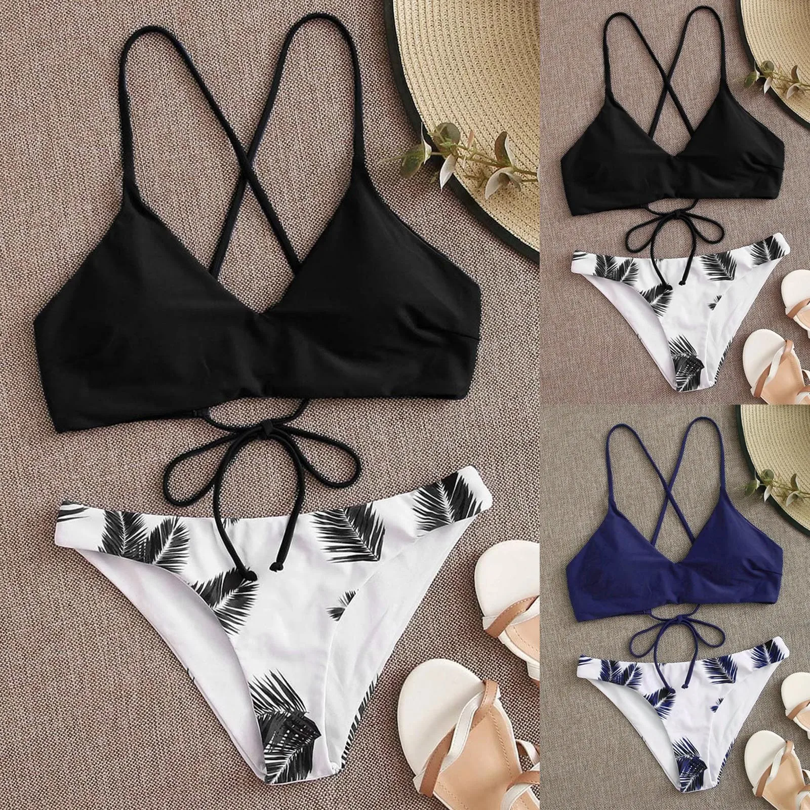 Женский комплект бикини с цветочным принтом, пуш-ап, купальник, пляжная одежда, купальный костюм с подкладкой