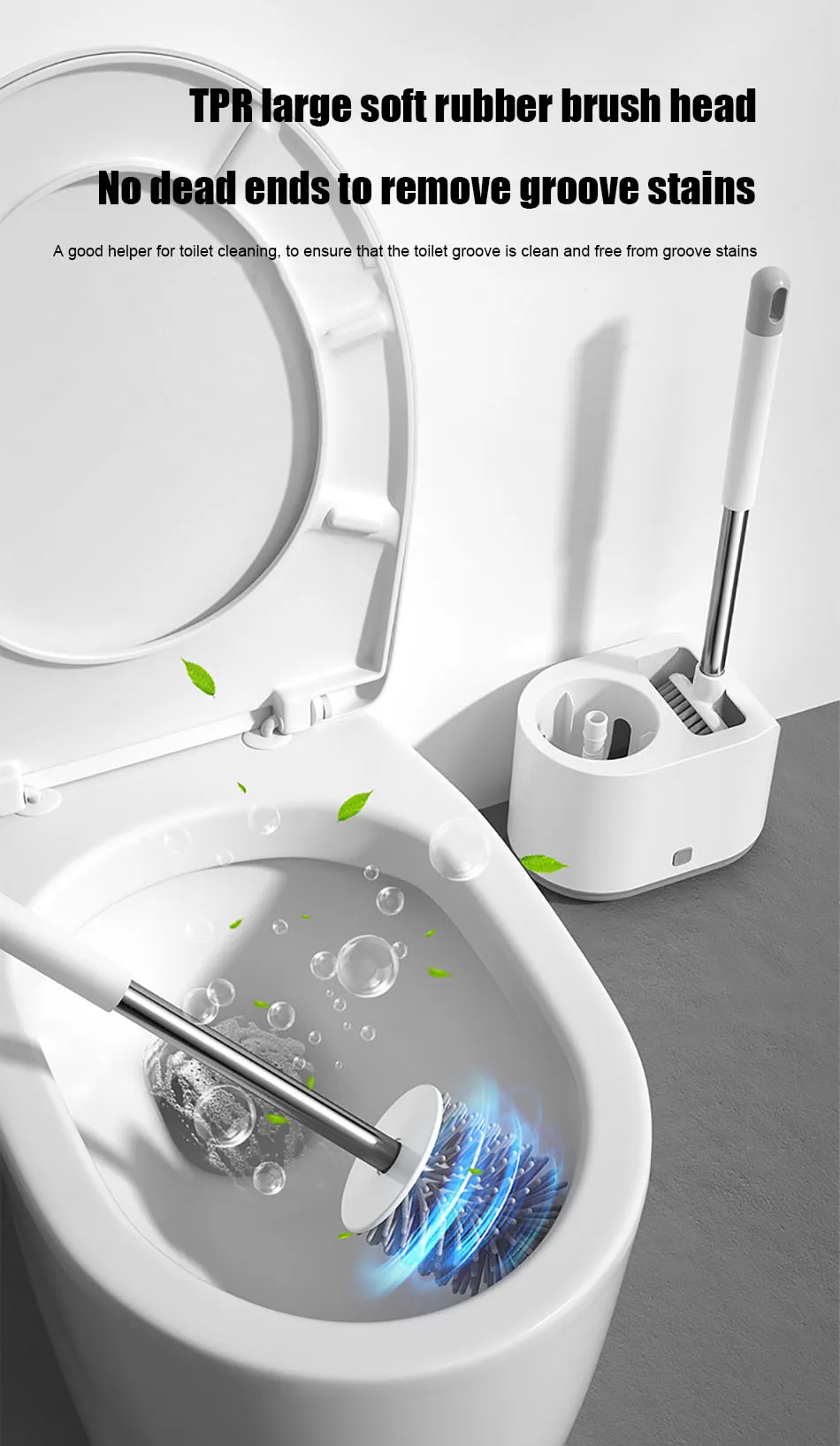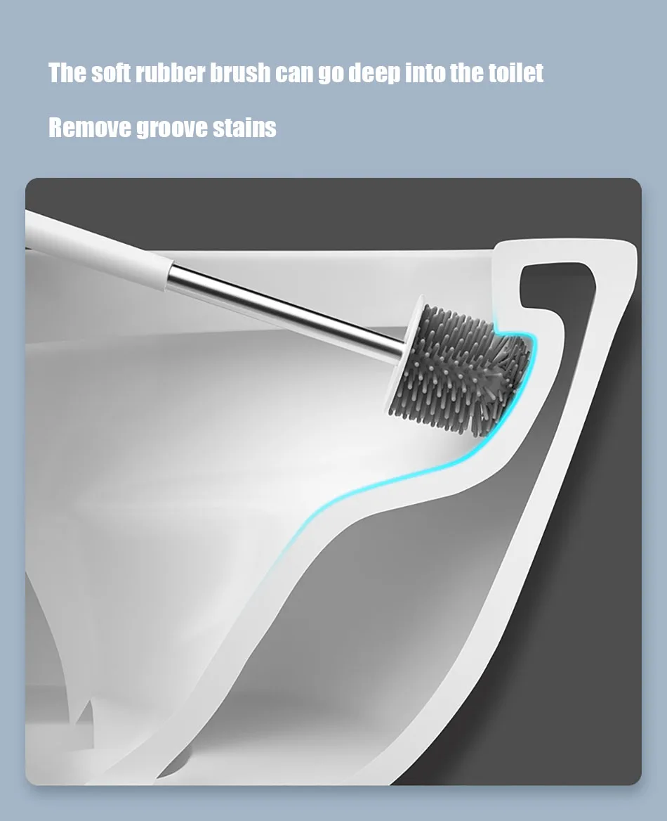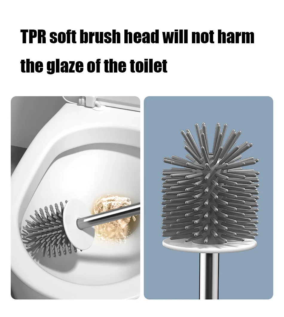 1. Мягкая и большая головка щетки из ТПР легко удаляет пятна с канавки унитаза без мертвых углов и сохраняет чистоту туалета