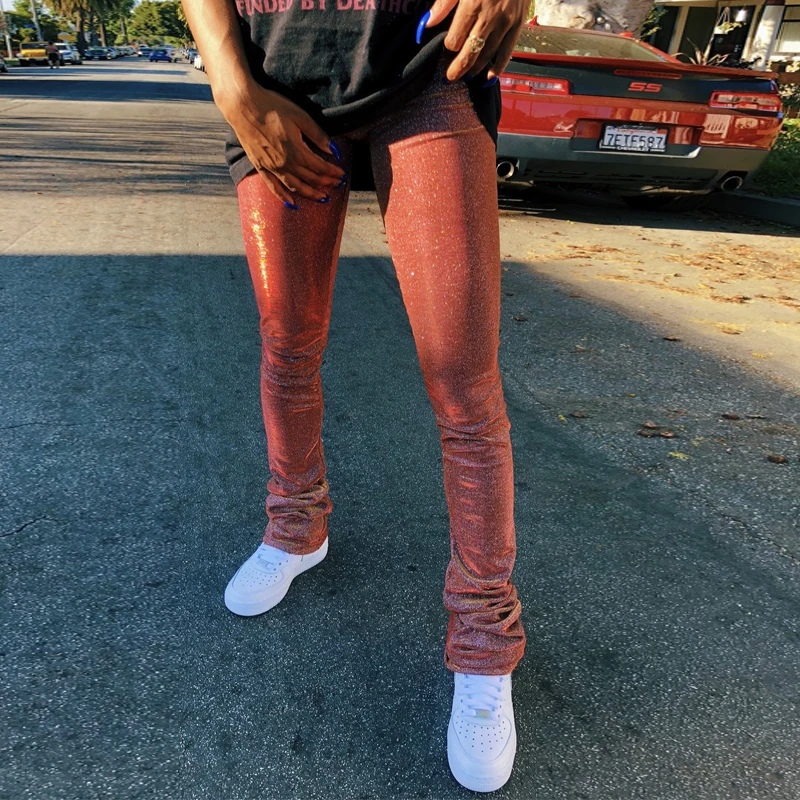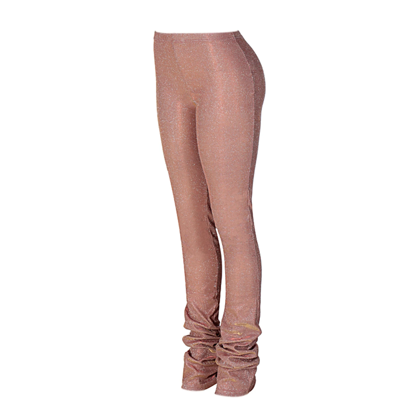 Леггинсы женские с блестками и высокой талией, модные облегающие брюки-карандаш с блестками, однотонные в молодежном стиле