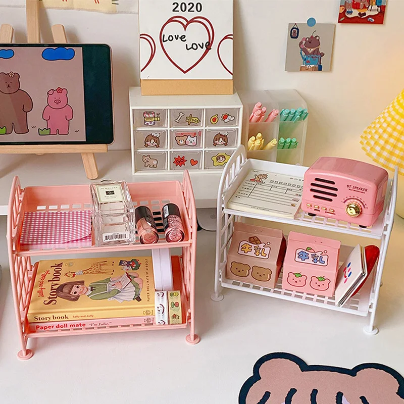 Корейская симпатичная 2-уровневая полка, Пластиковая Полка для хранения, Складная полка для хранения в общежитии, Бесплатная установка, стол для девочек