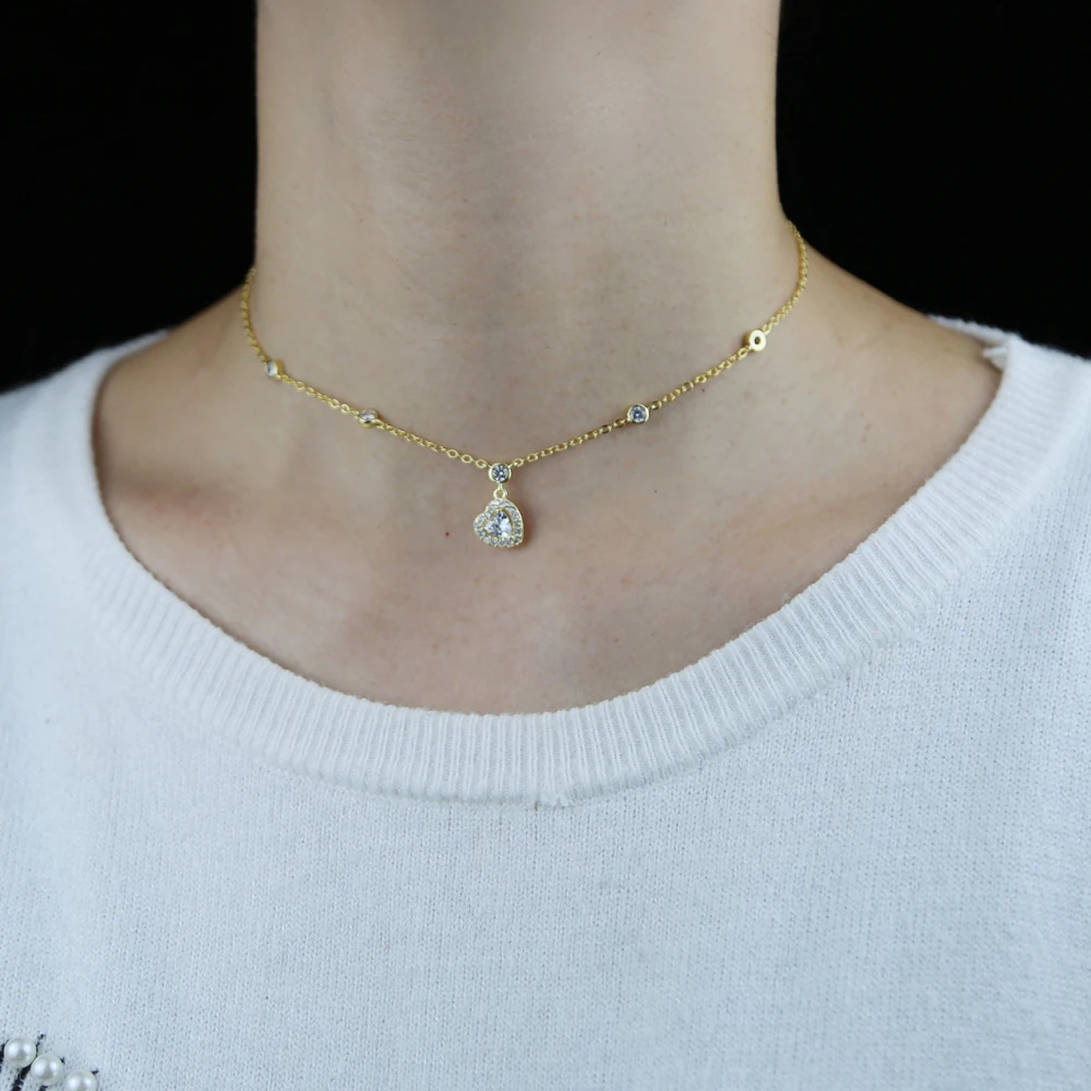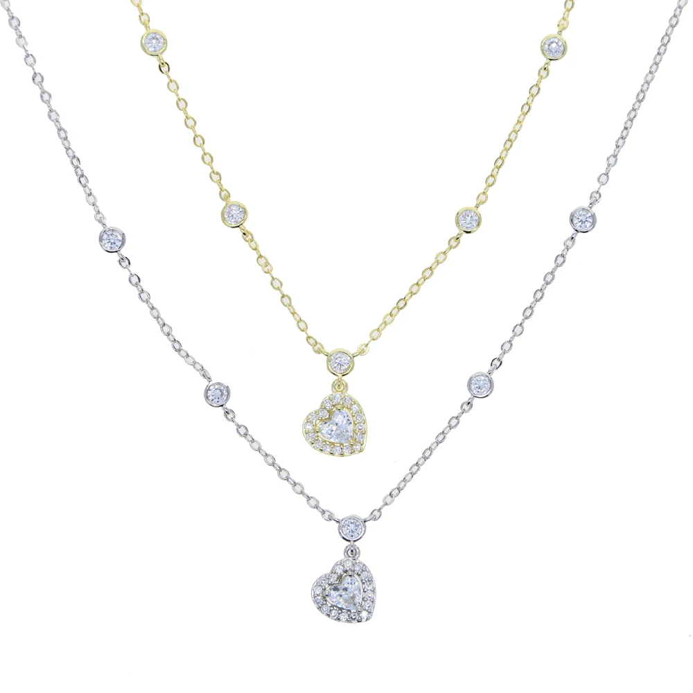 2021 Высокое качество кубический цирконий Белый CZ Искрящиеся украшения Шарм в форме сердца CZ станция цепочка Ожерелье