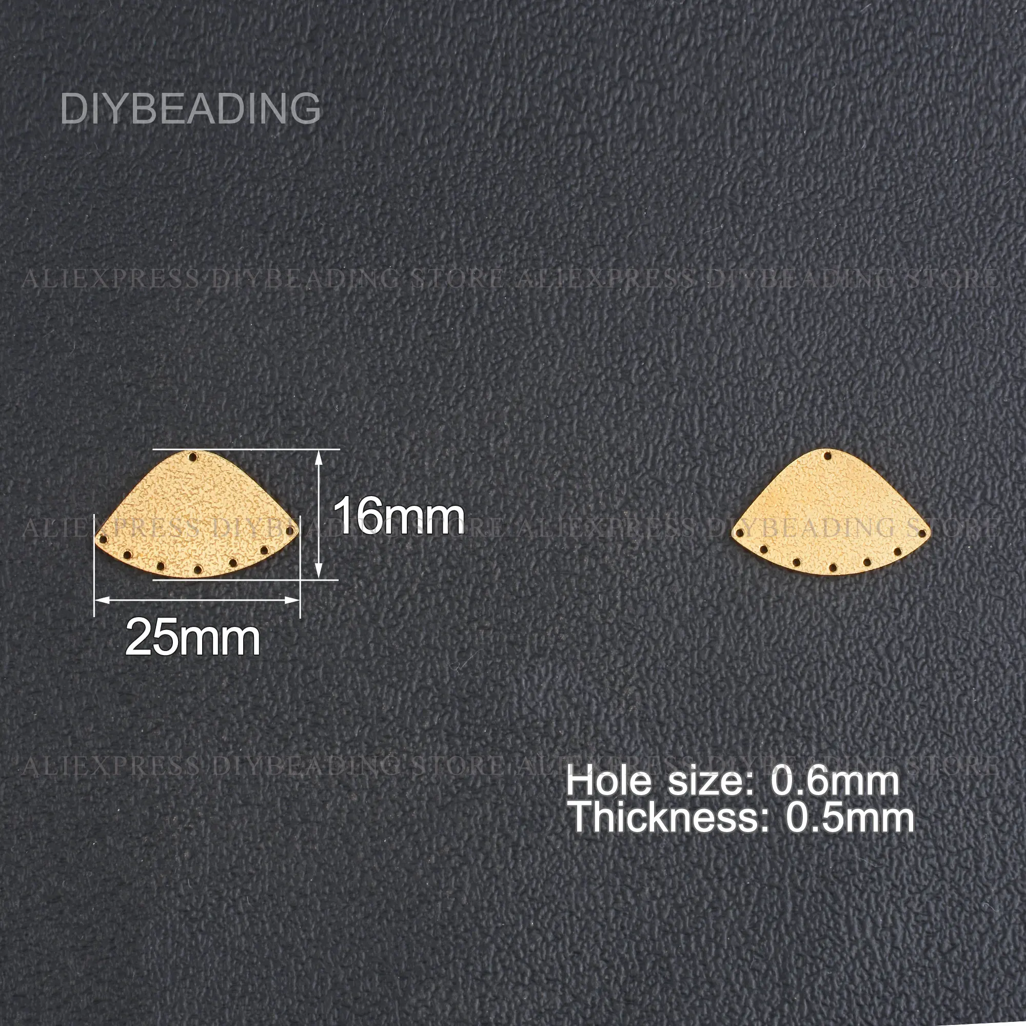 Размеры: 25*16 мм, толщина составляет 0,5 мм отверстие 0,6 мм