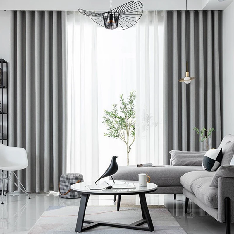 Современные затемняющие шторы XUNTUO для гостиной, спальни, оконные шторы, готовые занавески, однотонные кухонные шторы