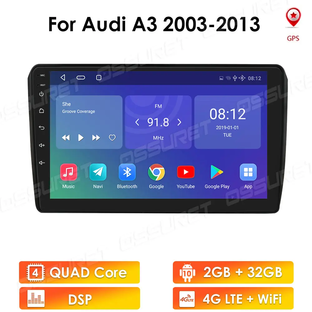 Автомагнитола 9 дюймов, Android 10, для Audi A3 8P 2003-2013, GPS, автомобильный стерео, мультимедийный видеоплеер, 4G, LTE, Wi-Fi, USB