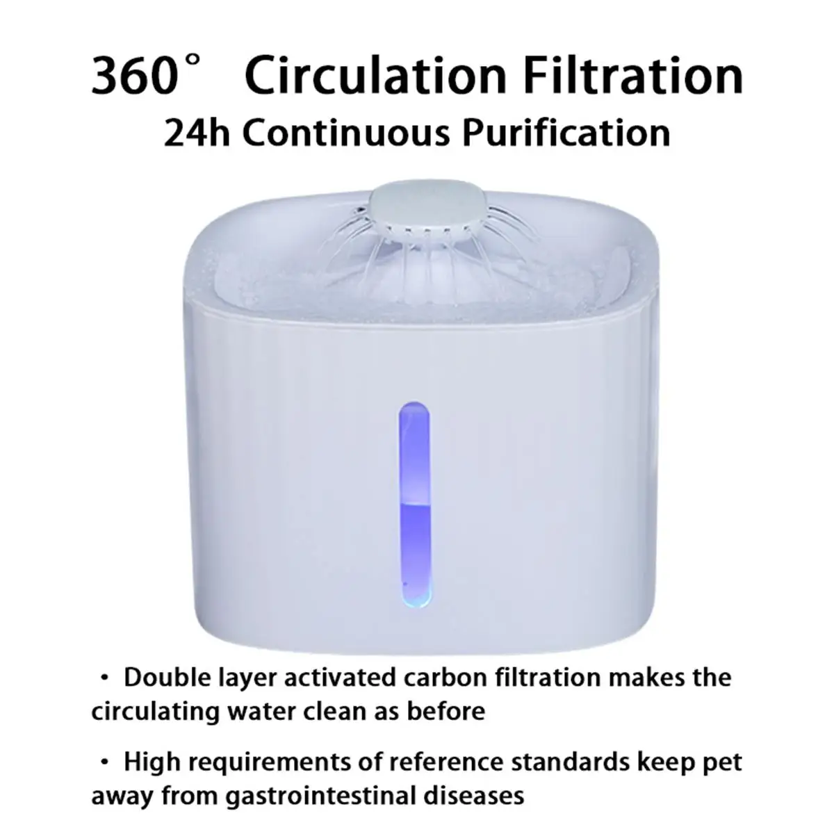 Особенности:-Большая емкость: с большой емкостью 3л, вам не нужно часто пополнять воду, не нужно беспокоиться о выходе в течение длительного времени.-Безопасный и экологически чистый: Изготовлен из высококачественного пищевого материала, эта автоматическая чаша для воды не содержит BPA, Нетоксичная и без запаха, которая может использоваться безопасно и безопасно.-Привлечите вашего питомца к питью больше воды: струящиеся фонтаны могут привлечь интерес американцев, стимулирует их пить больше воды и оставаться здоровыми.-Предотвращение сухого горения: окно уровня воды с светодиодный светильник напоминает о добавлении воды во время дня или ночью. Когда уровень воды низкий, светильник становится красным, и насос автоматически отключается.-Бесшумный насос: с очень тихим насосом вы почти не можете слышать звук воды, что не влияет на вас и вашего питомца для отдыха.-Уникальный светодиодный дизайн: со светящимся светодиодный, фонтан превращается в определенное украшение в ночное время, добавляет удовольствия питью ваших питомцев. Также он может помочь домашним животным и владельцам найти фонтан в ночное время.-Легко чистить: простая БЫСТРОРАЗЪЕМНАЯ структура предназначена для легкого удаления и очистки.