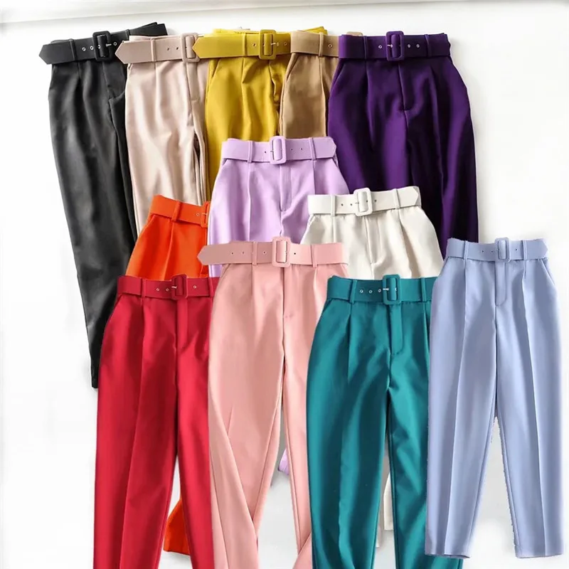 Весенние женские брючные костюмы Icclek, красные брюки с поясом, Же...