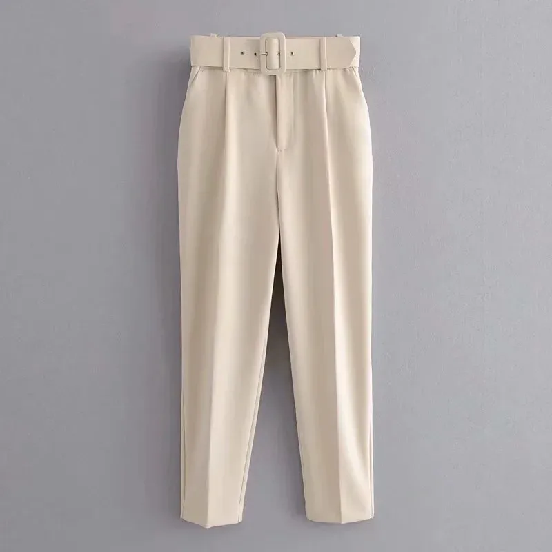 PSEEWE женские брюки 2021 костюмы с поясом желтые брюки с высокой талией женские брюки Urbane модные черные офисные бежевые брюки для женщин