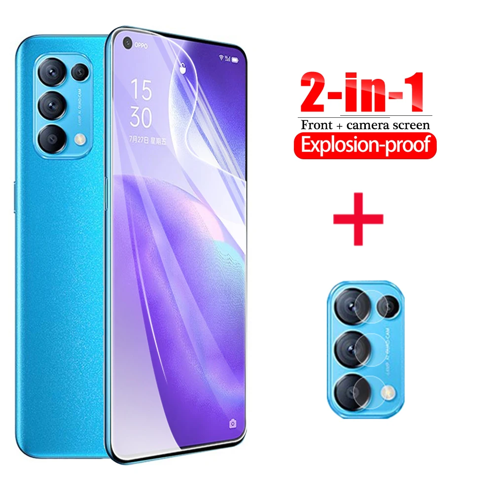 2-в-1 защита экрана Защитный кожаный чехол для OPPO Рино 5 5Pro 5G полное покрытие гидрогель пленка на Рино 5 pro 5 для стеклянного объектива камеры