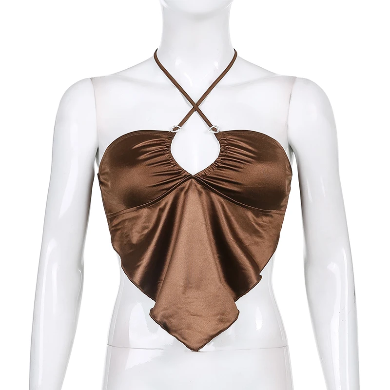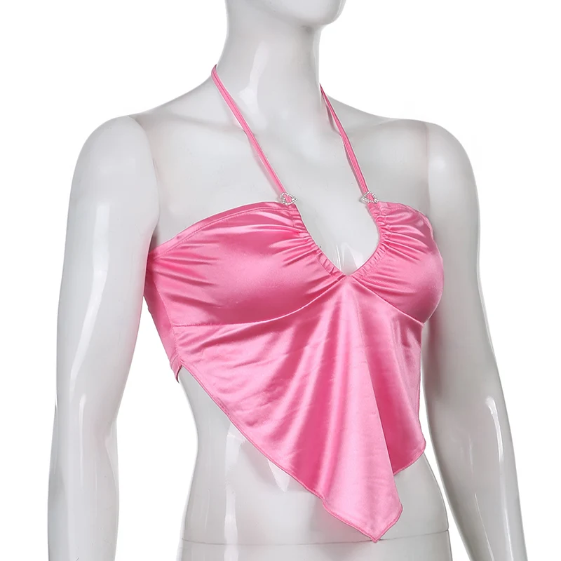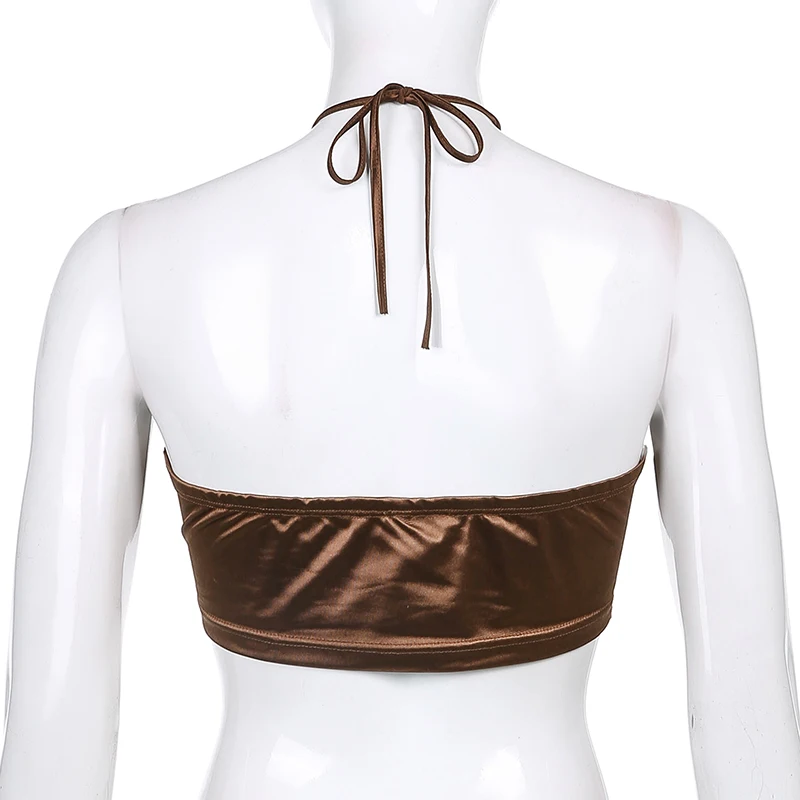 Коричневый винтажный ярко-розовый детский топ с открытой спиной и V-образным вырезом