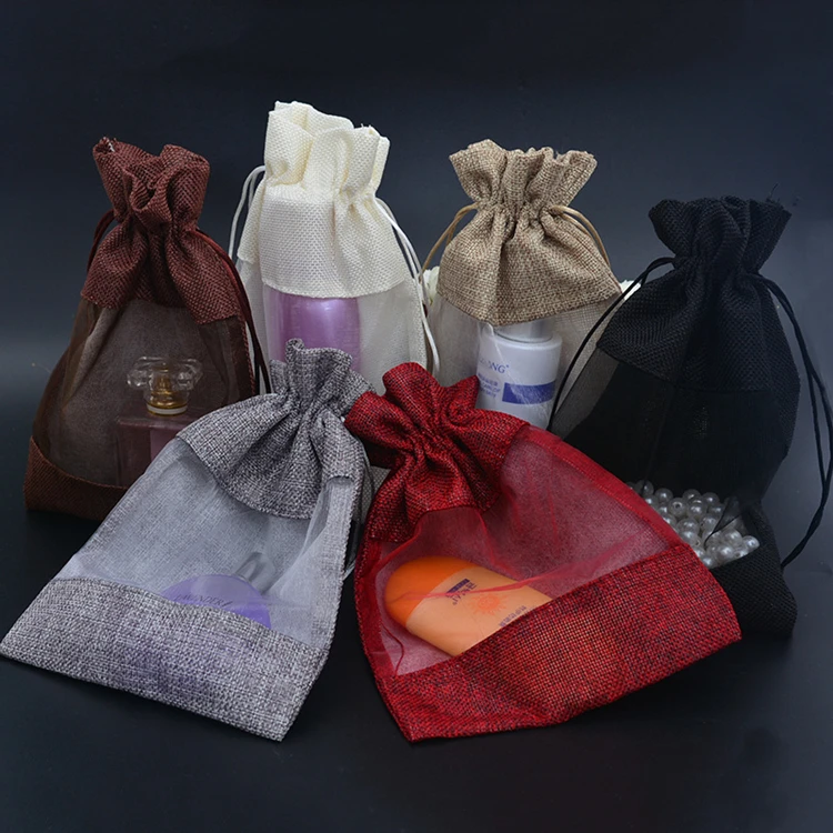 Название продукта: на завязках льняные сумкиМатериал: джутРазмер: 10X14CM13X18CM