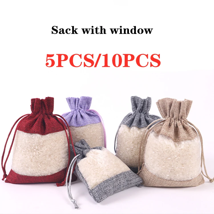 Красочная сумка из натурального джута с боковым окошком на шнурке, упаковка для конфет, ювелирные изделия, подарок на Новый год, свадьбу, день рождения, сумка для хранения